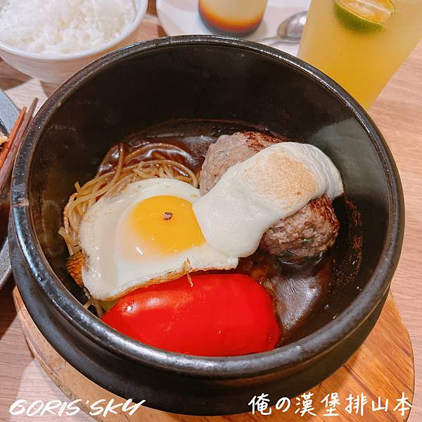 這個就是招牌的漢堡排,漢堡排裡面有乳酪唷!!!然後還是日本八丁味噌醬汁,整個鑄鐵鍋吃起來一直都能燙燙的,還有些野菜,跟麵條,真的是很澎湃豐富又下飯!