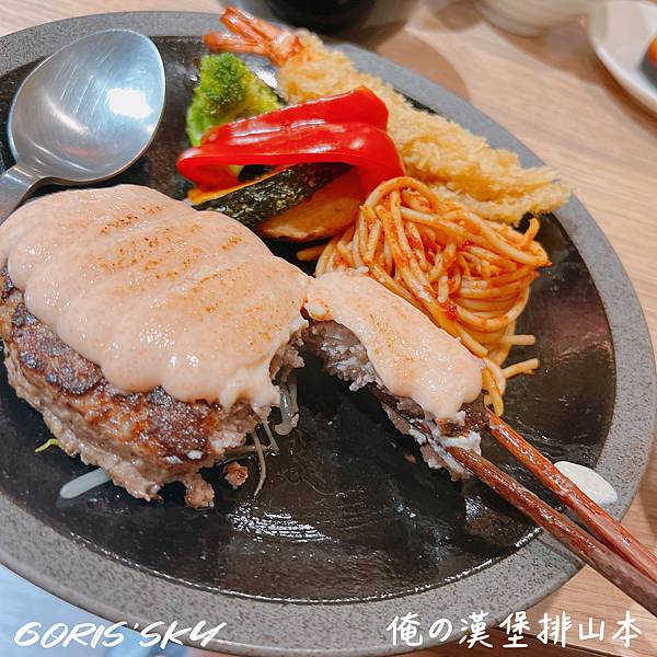 俺の漢堡排山本(山本漢堡排)這個明太子漢堡排這樣吃真的有夠療癒好好吃!