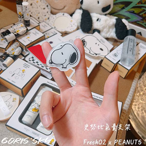 另外,還有這史努比氣囊支架,就是貼在手機後面作為支架用,也可以拿手機的時候防止手機掉落,直接是史努比大臉,也可以說有夠可愛有夠實用。