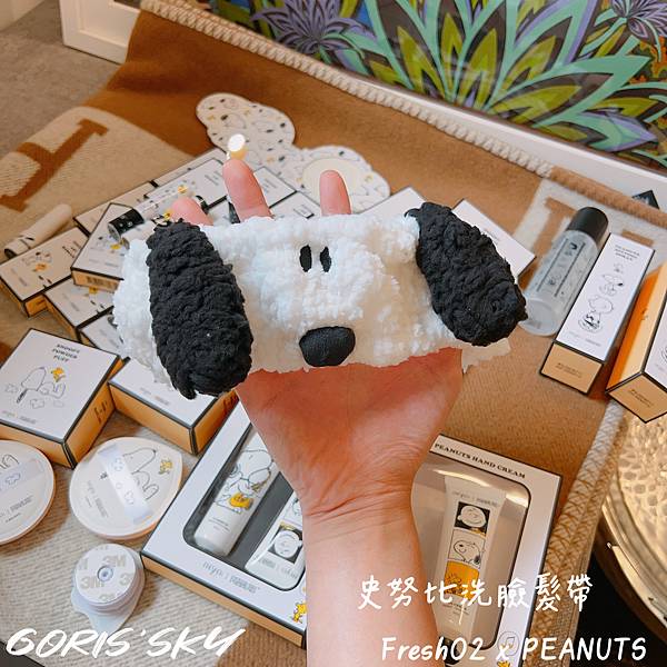 同樣實用,甚至是可以作為睡衣派對的史努比洗臉髮帶,幫助你洗臉頭髮固定,敷面膜也實用,在家沒事看劇帶著也比較輕鬆沒負擔,不小心照到鏡子還會覺得自己很可愛!