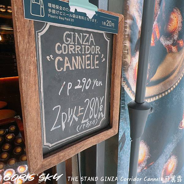 THE STAND GINZA Corridor Cannele可麗露一個290日圓,一次買兩個以上的話是一個280日圓,大概這樣。