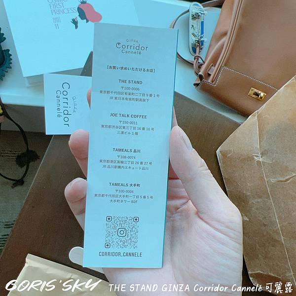 THE STAND GINZA Corridor Cannele可麗露包裝質感很好,帶點復古感的包裝袋,然後可愛的夾子挾著小dm這樣的包裝,文青可愛。