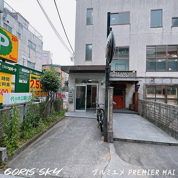 但我要說的是,プルミエメ (PREMIER MAI)真的是有夠難找,我在代代木公園站晃了好久,繞了好多圈,看google地圖還是找不到,後來才找到是在這,這樣應該就很好認在哪了,因為プルミエメ (PREMIER MAI)真的沒有明顯招牌,然是藏身在這棟大樓的二樓,之真的是沒特別來過,很難找。