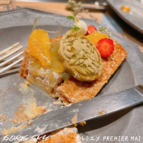 プルミエメ (PREMIER MAI)水果花朵千層派也是看人家說人氣招牌必點,宛如藝術品的雕繪感