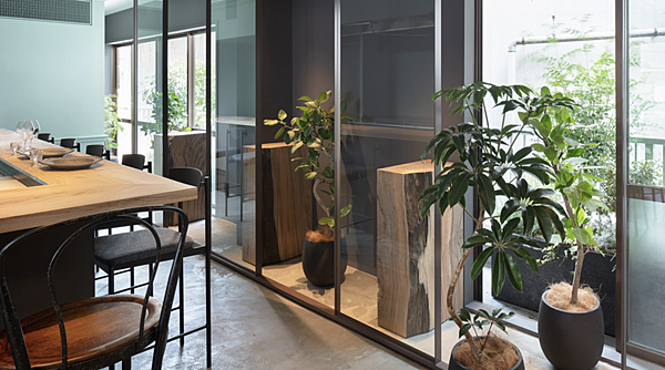 プルミエメ (PREMIER MAI)店裡也有這樣的大長桌,但基本上來プルミエメ (PREMIER MAI)除非你很多人啦,建議還是盡量坐鐵板前,可以看料理人料理給你看。
