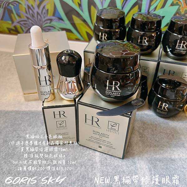 針對黑繃帶修護眼霜新品上,最強的59折新品特惠堪稱這組,雖然目前週年慶陸續要開跑,但這組是新品首賣期間的組合,週年慶沒有喔! 而且週年慶長達到12月底等,你現在眼周肌膚也是要保養吧,特別是針對新品特惠59折,直接買就送到10ml的5H.A.玻尿酸緊緻抗皺精華 ,這個50ml就要16600元,10ml價值就3320元了有夠划算外,重點是搭配HR赫蓮娜獨家訂製只送不賣的頂級雙效亮眼珠,單是這個搭配黑繃帶修護眼霜更好吸收、效果更加成,那個質感、扎實感,你去專櫃請貴借給你摸摸看,拿拿看,一拿就會懂。重點是!!這個是限量的,你晚買就不一定有了喔!