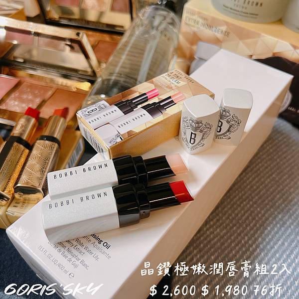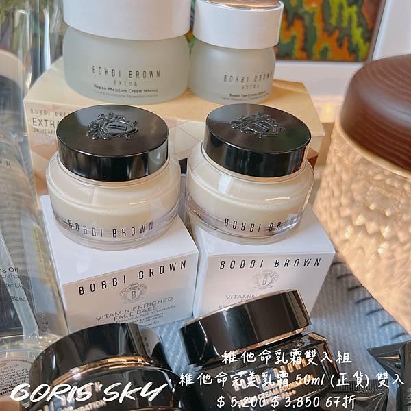 我甚至覺得保養不會輸彩妝給肌膚吃的維他命乳霜雙入組也是67折,清爽不油膩,給肌膚妝前膨潤、明亮感;BOBBI最強最療癒舒服的晶鑽桂馥系列,我最愛的賦活露竟然停產我難過,但組合的保濕凝傷、彈力滋潤眼霜,搭配髮帶64折回饋的也是很有感。