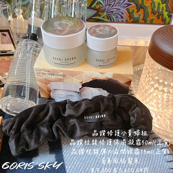 BOBBI最強最療癒舒服的晶鑽桂馥系列,我最愛的賦活露竟然停產我難過,但組合的保濕凝傷、彈力滋潤眼霜,搭配髮帶64折回饋的也是很有感。