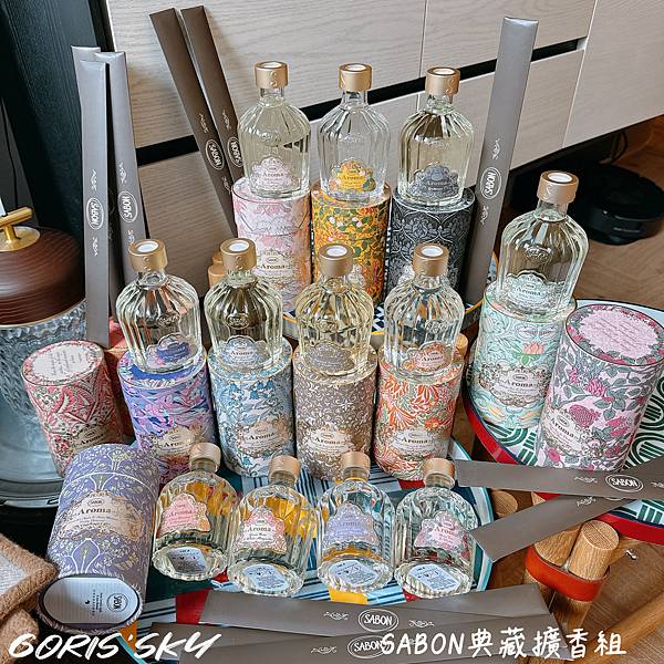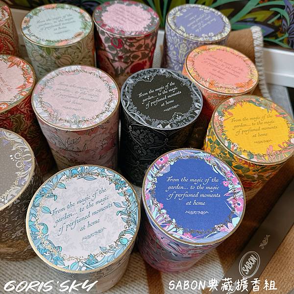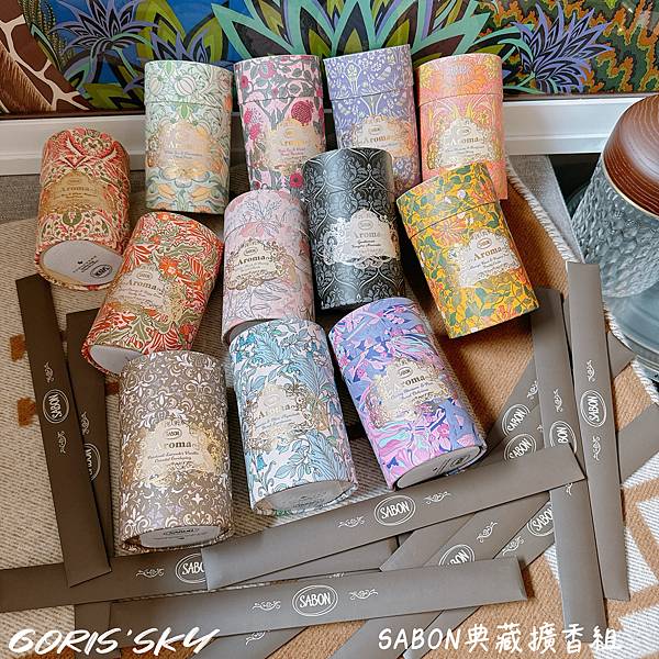 只能說,在這次SABON全新升級的典藏擴香組中,整體包裝質感更好更漂亮,每一個味道皆有專屬的圖騰,融合法式古典壁紙的圖騰加上花果花草,然後繪滿在禮盒包裝之上。