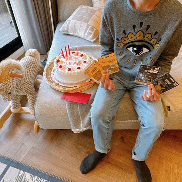 他自己的蛋糕,全程給他自己提回家哈哈哈哈,讓他知道心意有多重