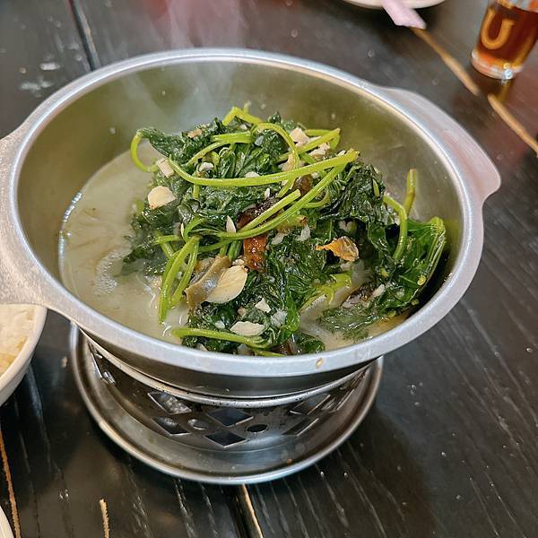 地瓜葉皮蛋:我帶他吃過皮蛋豆腐他意外接受度很高,就點了地瓜葉皮蛋,他說這2個竟然可以這樣混合在一起很特別(但沒說好吃哈哈),反正日本人說的一些擦邊球形容,你就大概懂。