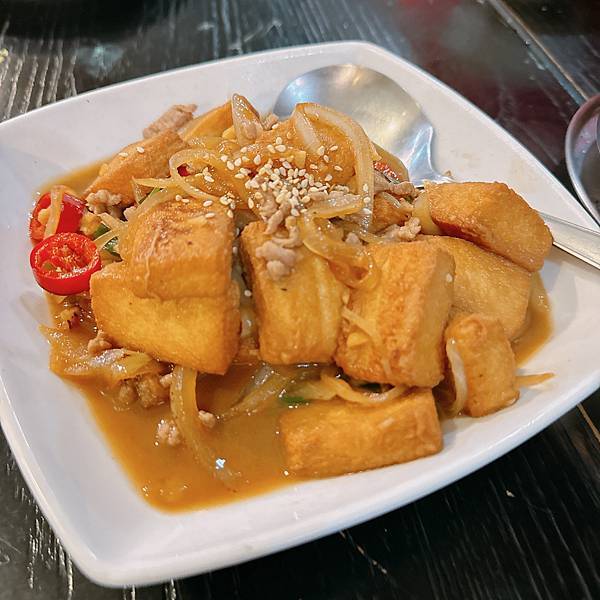2.老皮嫩肉:中文博大精深我無法跟他解釋這名字的由來,他只是一直在找肉在哪,我說沒有!這就是豆腐!!!!蛋豆腐!