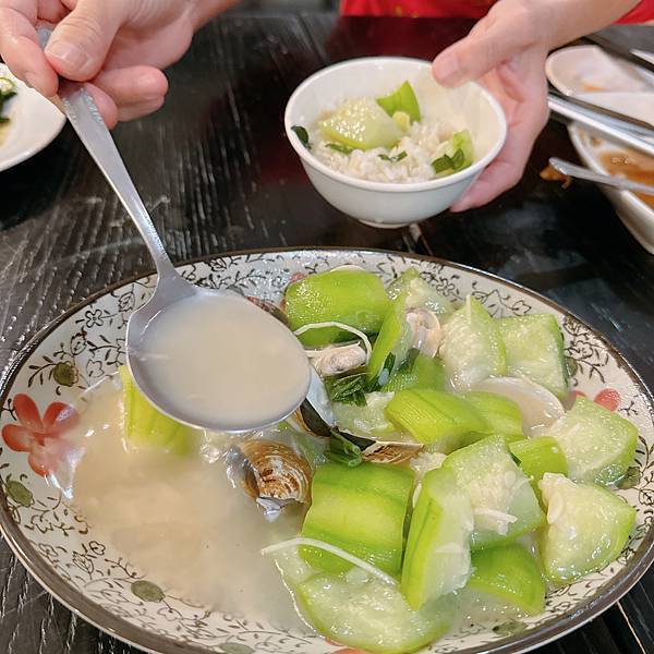 3.絲瓜蛤蠣:日本好像很少絲瓜,有聞日本人很愛鼎泰豐絲瓜小籠包,故意點來,他以為是湯?哈哈,然後絲瓜覺得很燙,吃蛤蠣為主,下一妙我媽拿湯匙舀湯澆飯這件事讓他很意外!哈哈哈