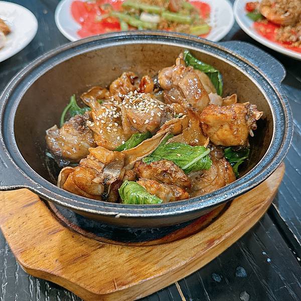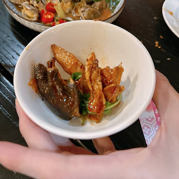 7.三杯雞:很難解釋三杯是什麼哈哈哈哈我只是最意外的他又挑起裡面唯一那隻雞腳來吃!他會不會太愛雞腳!