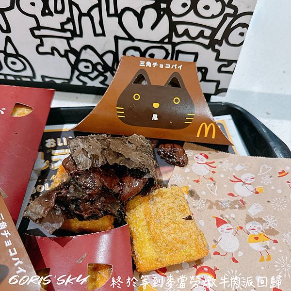 但這黑貓三角巧克力派很多人說好吃,我個人是還好,但沒吃過還是可以嚐鮮的,很可愛,很爆漿,我是覺得裡面巧克力的味道不高級啦 哈哈哈