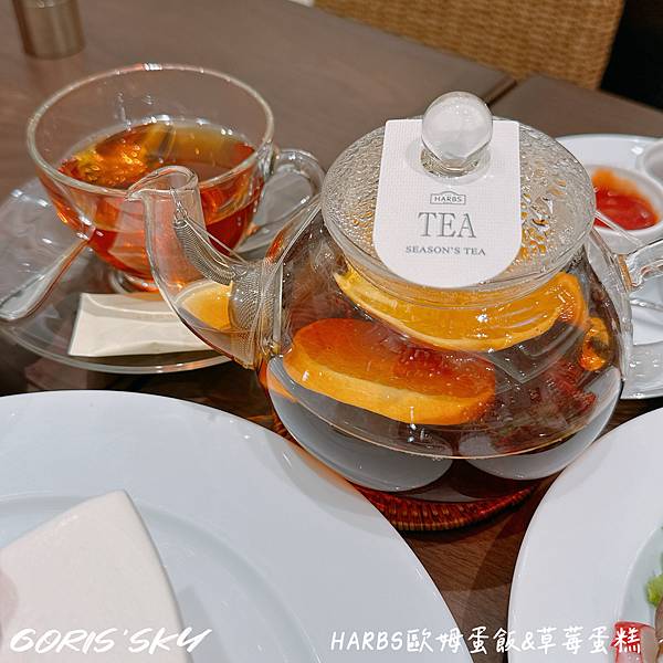 我蠻愛HARBS的季節紅茶,特別是她這樣泡著好大塊的萊姆,加上一些香料真的好好喝,配蛋糕也解膩