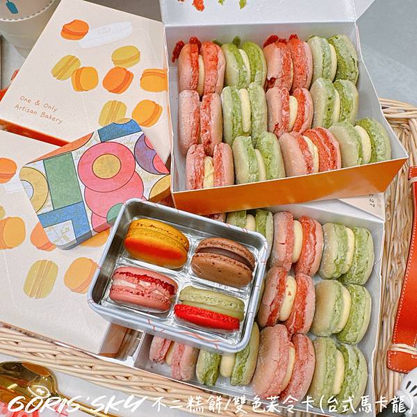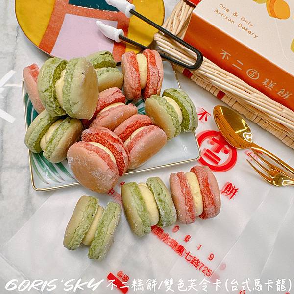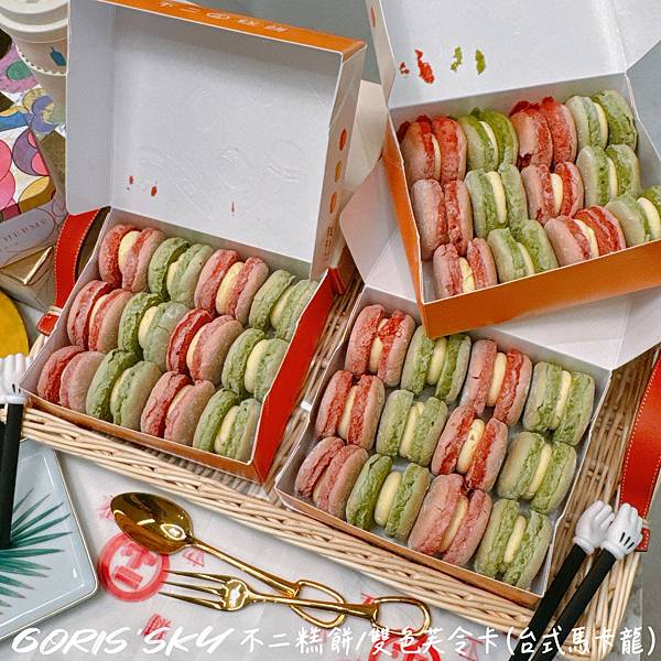 而且你要想想,Pierre Hermes馬卡龍台灣一顆賣130 !!!!不二糕餅這芙令卡(台式馬卡龍)一盒220元,有12顆!哈哈哈哈哈哈哈哈哈真的完全可以閉眼狂吃吃到爽!不過雙色感覺也沒有太明顯的他口為,只是用自然的調色讓視覺感比較美。