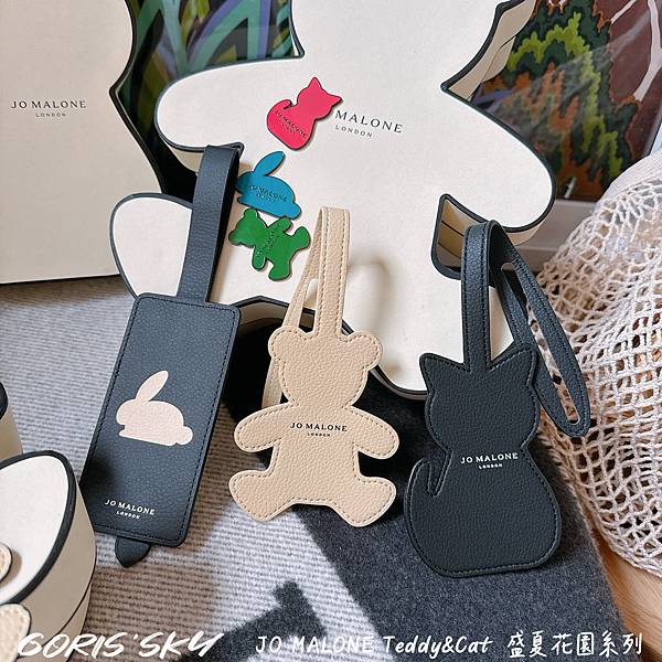 最可愛的還有這種熊熊、貓貓還有兔兔的三款行李吊牌,都有JO MALONE LOGO,質感非常好、手感也很好,顏色也很不賴,掛在行李箱上超可愛,在行李轉盤一眼就能看見