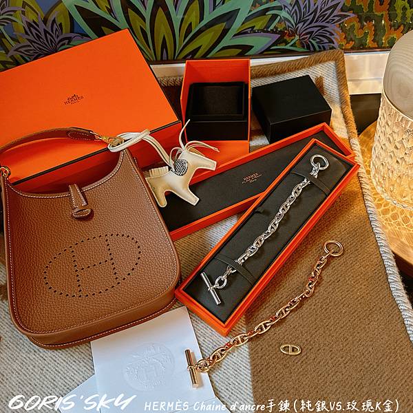 便宜到結帳我都嚇一跳有這麼便宜?但我是因為買過玫瑰K金版本被當時價格給狠狠嚇一跳後,終於被我遇到純銀版本的HERMES最大號豬鼻Chaie d'ancre手鍊,size也剛剛好可以的真的是日本匯率有夠甜的定價又比mini Evelyne便宜,又可以一起帶走真的是完全不需要猶豫真的是太開心!!!!!