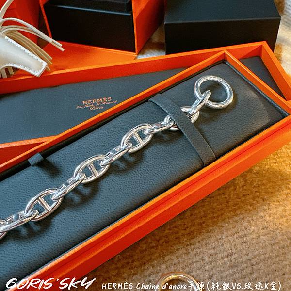 是我後來知道HERMES豬鼻Chaie d'ancre手鍊有純銀款,但我太久沒有買銀飾,單純就覺得容易氧化容易黑,是我後來看我日本愛馬仕Sales也是戴純銀的,她說常戴、擦一擦,放在夾鏈袋就比較不會黑,黑的話就隨時拿到櫃上當下清潔也蠻快的。