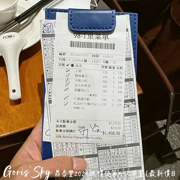 2024最新價目,但鼎泰豐還是很多可以點小份,但我不太確定小份有沒有漲價,總之還是蠻多東西可以點小份的,帳單沒有寫,但可以詢問一下