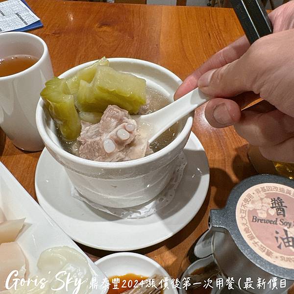 然後小菜、辣味黃瓜我必點(最新價格來到一份120!!哈哈哈哈),苦瓜排骨湯也是我喝過之後回不去的有夠好喝!我媽看我吃了炒高麗菜,看到價格嚇一跳地說我去市場幫你買一顆炒蛋比這多10倍!我說不一樣啊!鼎泰豐的炒高麗菜不知道為什麼就是很嫩很好吃!
