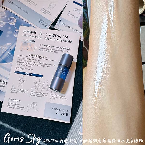 使用上我覺得最有感就是當下你可以感到非常好吸收的像是整個濕潤滲透進肌膚中,肌膚慢慢飽滿像是被撐起來,最明顯的就是改善因為年紀,所帶來的老化,造成的缺水,以及塌臉感,其實我都38了,加上我瘦了15公斤左右,現在最在意的就是塌臉感所造成的老化感,而這全新REVITAL莉薇特麗#水光多胺瓶/多胺超微無痕精萃在使用上,就如同乾枯的海綿重新得到澎潤,補充玻尿酸之後肌膚先撐起來了才會看起來年輕,但又不是只有表面,而是從肌底撐起來。