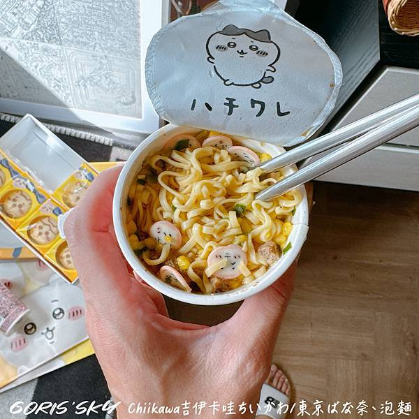 結果回台速度值整理伴手禮,8入的東京香蕉打開來還有隨機Chiikawa吉伊卡哇貼紙,泡麵打開來還有Chiikawa吉伊卡哇隨機的臉......真的是可愛的太過分!