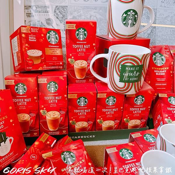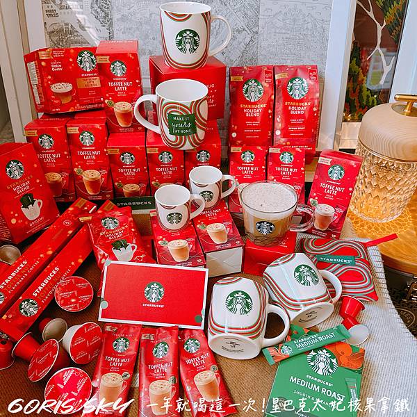 總之!!!!喝了這一杯才是今年的完美結束最壓軸!!!!!!!!!今年限定星巴克馬克杯更是大中小三款通通有的藏在各禮盒之中,等於買星巴克太妃核果拿鐵直接就會送!甚至是環保愛地球的摺疊星巴克LOGO節日限定購物袋也通通有!很誠意,歲末最壓軸的就是20組!每組含有一盒星巴克太妃核果拿鐵+星巴克馬克杯+星巴克環保購物袋,這樣一組是不是很誠意!~