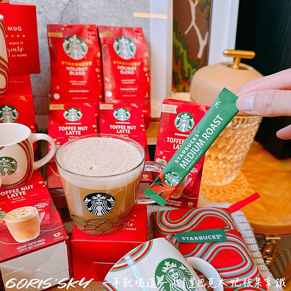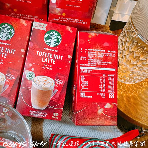 一盒4包星巴克太妃核果拿鐵,2024全新包裝也很有節慶氣氛,一盒4包甚至是拆開來分,或是隨身攜帶,想到就拿出來泡,一個馬克杯,熱水沖泡馬上可以喝,特別是秋冬要變冷了,或是女生比較辛苦,那個來的話,一杯暖暖的馬上溫暖身體,也會比較舒服,泡一杯也就32元!比起一杯星巴克100多真的是便宜太多啦!