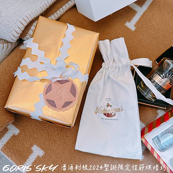 這次潘海利根針對聖誕限定,除了有專屬的包裝紙外,還有特別的緞帶、聖誕掉卡,甚至是有專述的聖誕束口袋,以及聖誕餅乾模組等相關贈品。