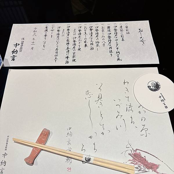 有menu為證我之前來日本很愛吃帝王蟹套餐、松葉蟹套餐、或是和牛套餐那種,雖然整個量還是蠻划算的,但一人差不多也要一萬多,但這家大阪難波中納言千日前味樂館,我們已經吃最貴的套餐了,大概也就5000左右,價錢完全都是過去吃鱈場蟹、和牛、甚至是松葉蟹料理的一半不到,但幾乎每道料理都有完整的伊勢龍蝦,我真的覺得相對來說CP值好高好划算,而且我整個覺得吃起來也完全不會輸鱈場蟹、和牛的爽!!!!!