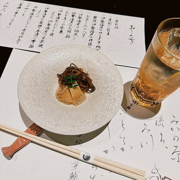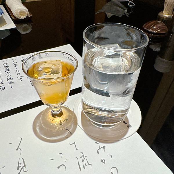 這家大阪難波中納言千日前味樂館蠻特別,大概是套餐,所以不用另外點酒水,有餐前酒,也會提供冰水,但我們還是習慣點飲料