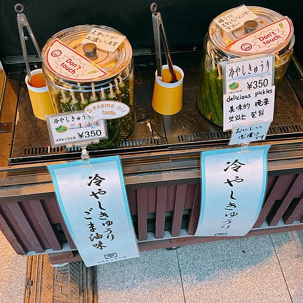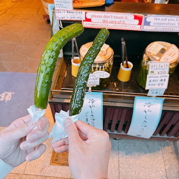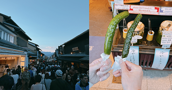 吃過嗎?太太太太好笑了!人生第一次來京都除了超超超超多人外!!!!就是被他硬逼吃的小黃瓜,我本來看著一堆在甕裡覺得有點噁,但他就要我吃看看,說很傳統?我就想說他來台也都很勁量嘗試了,我也配合他一下,因為我真的看到很多人手一根也有點好奇,一開始不知道啥,竟然是整根小黃瓜,我還以為是生的直接泡水洗乾淨我也覺得我幹嘛吃這個?殊不知有鹽漬、芝麻或是檸檬漬的!總之!!!!!!我個人覺得很好吃哈哈哈哈哈哈好好笑!我現在對於京都就是等於小黃瓜!哈哈