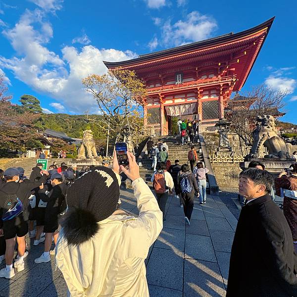 清水寺我只能說人超超超超超多!不只觀光客,各種日本學生的旅行團體也是一大堆!但現在楓紅,老實說很美,只是滿滿都是人!但上去後往下拍的京都美景還是挺漂亮的(他跟我說這裡過年晚上人會更更更多)