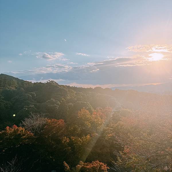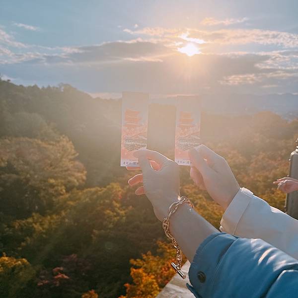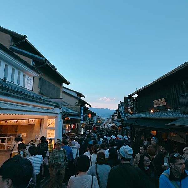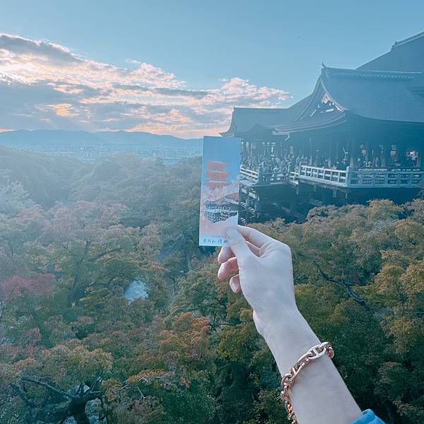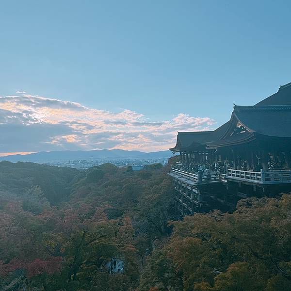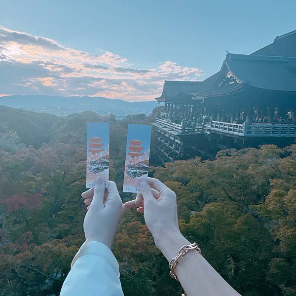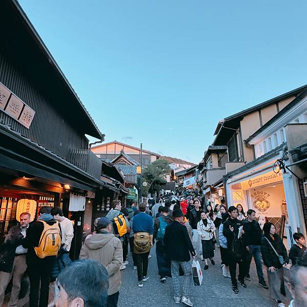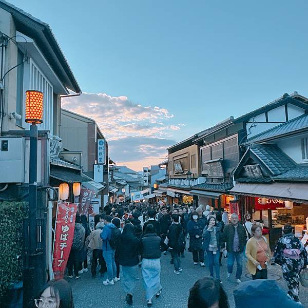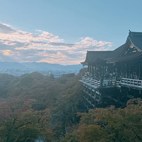 他安排的我們行程大概是一早走完嵐山吃完午飯,搭光之幻想列車,約莫下午三四點前往清水寺等黃昏這樣我整個人彷彿在走深坑九份行?哈哈我一開始還想說,蛤....我其實比較想去照片這個京都老街?看大家都在拍,氛圍感很不賴,結果看到他帶我去清水寺當下真的很想吶喊我現在沒有很想走寺廟行程了,殊不知往背後望去就是我想去的老街,原來在同一個地方!哈哈哈哈(完全不做功課所帶來的各種驚喜哈)