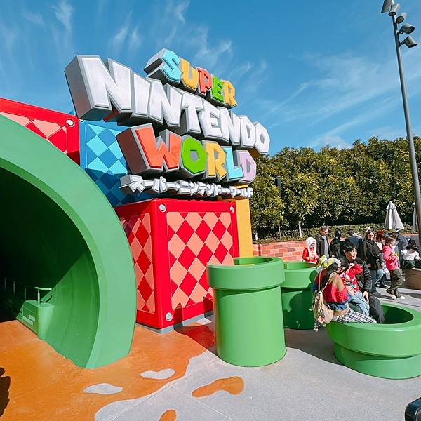 大概到這裡環球的任天堂瑪利歐園區比較算是正式入口,外面有任天堂的相關招牌,有水管桶可以拍照