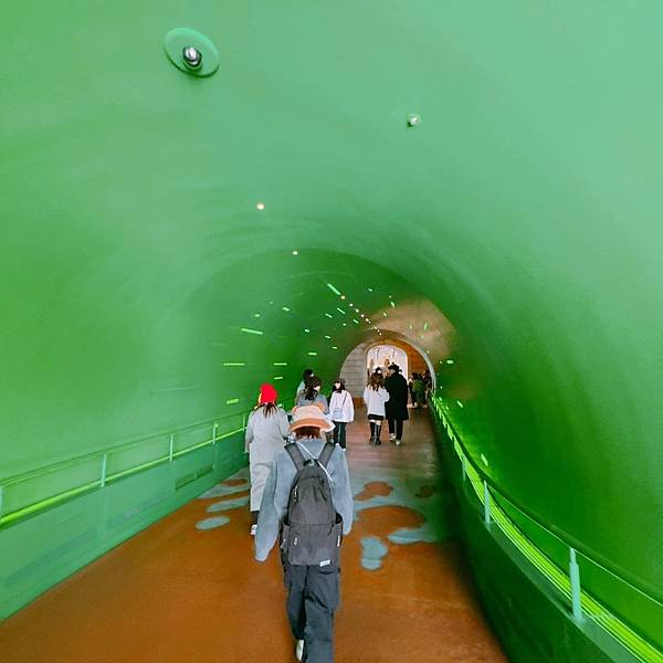 我很喜歡這個概念,入口就是穿過一個大水管後,有閃爍的燈,一種遊戲般的體驗在穿越過後即將到來。
