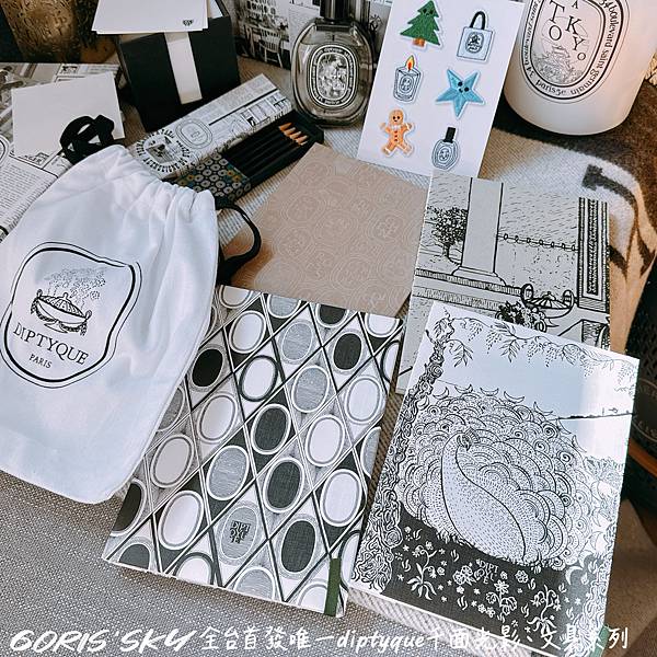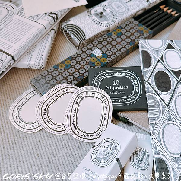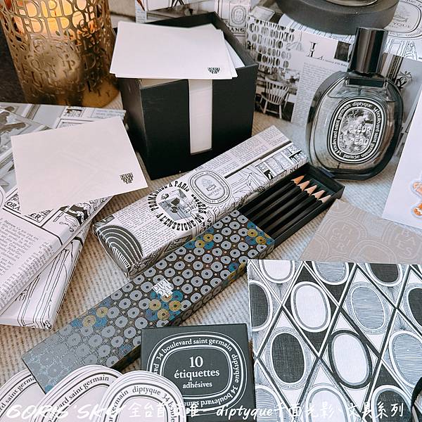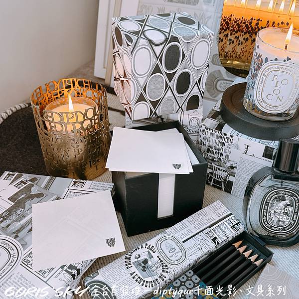 再者!你沒看錯,diptyque這次跨界跨的有點遠有點厲害的贈然推出一系列的文具也被我買到啦!舉凡鉛筆組、筆記本、貼紙,甚至是我個人最最推就是整盒百桌上美美的便條紙,就是將diptyque整個相關香氛藝術,透過各種層次、意象、圖案融入其中!