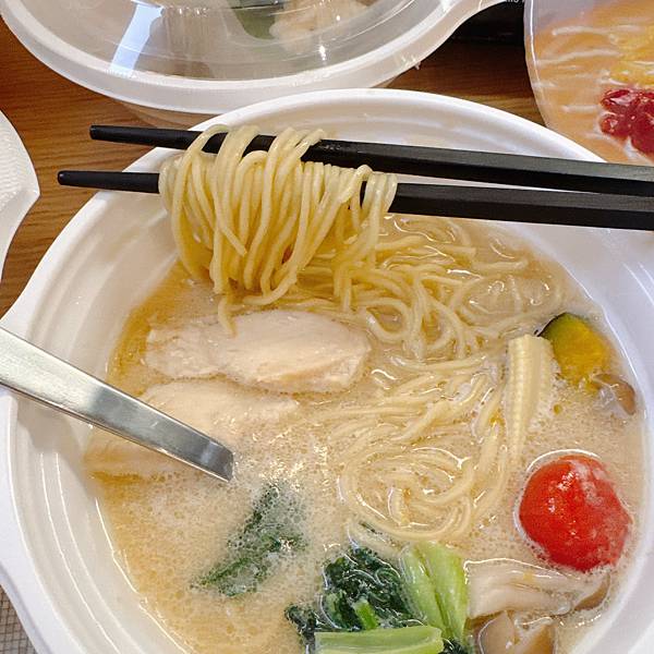 最大問題是雞白湯湯頭!可以理解好現在台北中山區那間銀座篝KAGARI拉麵也是日本空運過來的湯頭解凍還原,照理說應該一樣?但吃起來真的完全不一樣的單純一種死鹹感,雞白湯的濃潤香氣完全沒有店裡吃的感覺,雖然說超商這樣微波拉麵要完全跟店裡一樣本來就不太可能,但作為名氣這麼大的米其林一星的銀座篝KAGARI拉麵,這樣的表現真的讓人覺得可惜也真心失望。