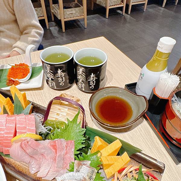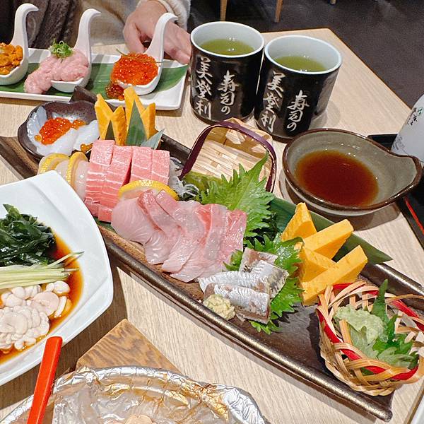 然後美登利的生魚片我也覺得很好吃,特別是他的配料從紫蘇葉、玉子燒、海帶、蘿蔔絲的都很豐富,都是好吃的,我蠻愛吃