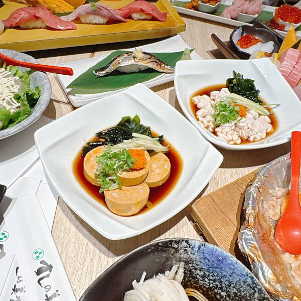 然後鮟鱇魚肝我也很愛,我就是好愛魚肝的味道,搭配橙醋好好吃,而且也有很多配料都是可以搭配吃解膩的。