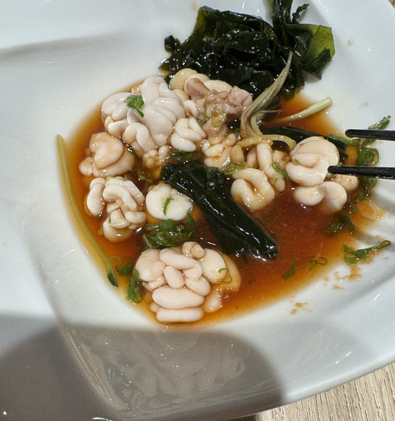 很好笑!我媽選的喔!我問我爸媽聖誕餐想吃什麼?我媽天外飛來一筆說她想吃看看白子,她說看我在日本吃好多又一直說好好吃,她好奇白子是什麼味道?還說也想吃河豚,好好笑日本才有河豚吧?