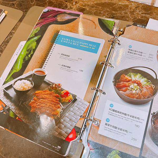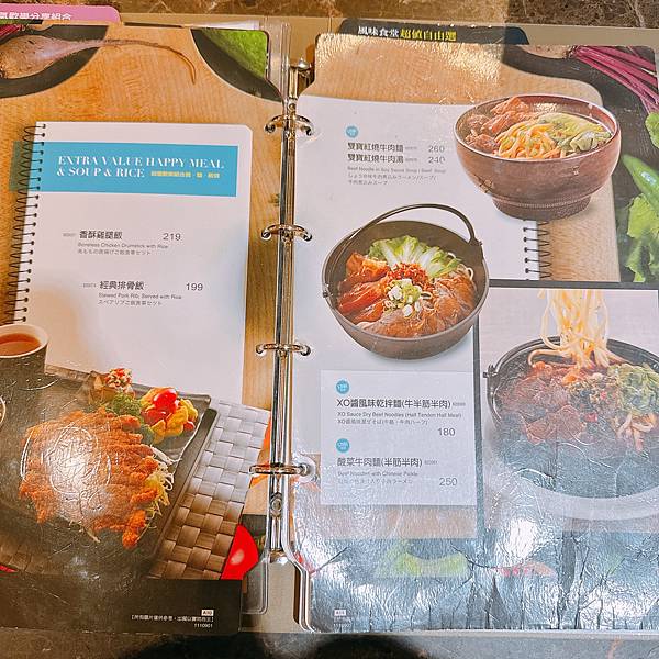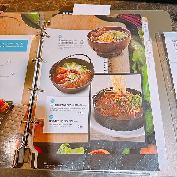 思思念念的牛肉麵,一共兩款,雙寶牛肉麵260元以及酸菜牛肉麵250元可點。