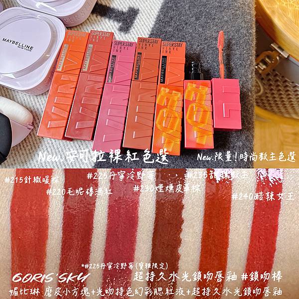 再者,講到完全媲美專櫃光澤鎖吻唇釉級的開架唇彩,就絕對不能不提媚比琳這 超持久水光鎖吻唇釉 #鎖吻棒 !光澤漂亮、又持久不掉色,本來就很熱賣了,2025追求的全新時尚高級4色安可拉裸紅色選,還有2色限量可甜辣可酷辣的的全新時尚教主色選。