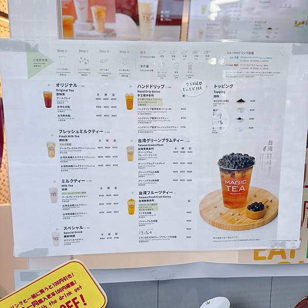 他鄉倍思親!!!!!耳聞日本友人提到茶之魔手在日本開店,他說他們偶爾會去買還喝覺得很好喝!本來想說不就手搖?我在台灣都不太喝了我幹嘛來日本喝?殊不知日本友人給我看他們打卡的照片,我一看到杯子上面有台灣字樣、有台灣圖示,我就驚呼:誒很好看噎!這個設計!哈結果就趁這趟快步走到涉谷分店買一下打卡紀念,而且店裡都是人很好的台灣人,可以不用講日文,好好聊天,莫名覺得放鬆自在!