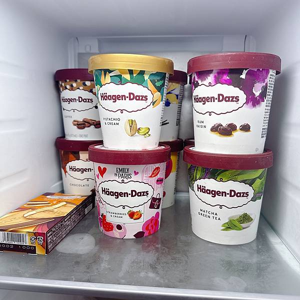 我就把我媽手機拿過來試!好啊好啊扯扯,我平常根本UBEREATS大客戶UBER ONE訂戶根本VIP竟然沒這張200折價券!哈哈哈哈哈,結果用我媽開了有!我傻眼!!!!!總之不重要,我就什麼都想吃,什麼都買一個,首推開心果、抹茶、蘭姆葡萄、夏威夷果仁、草莓、巧克力、咖啡、花生醬、芒果,連基本款香草都買了哈哈哈!!!!!我就是很喜歡我家冰箱冰滿哈根達斯,想吃的時候我還可以在冰箱前面挑口味,這個時刻我覺得自己好幸福的哈根達斯自由!哈哈哈哈哈