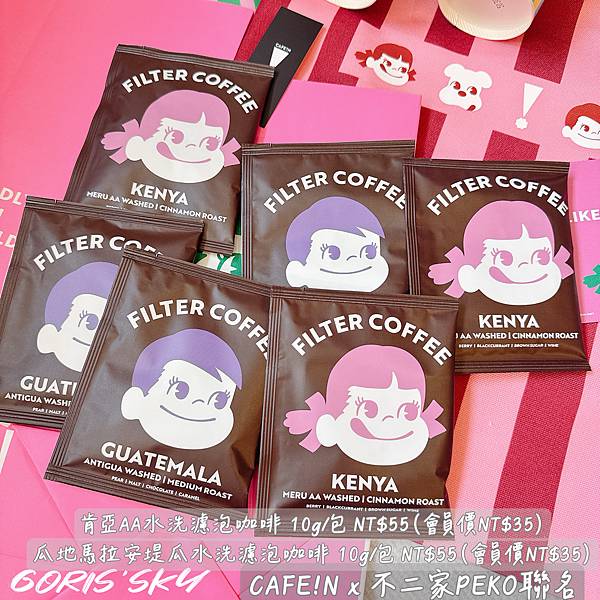 PEKO中淺培和POKO中培兩款濾泡咖啡,分別為肯亞AA水洗處理、瓜地馬拉安堤瓜。