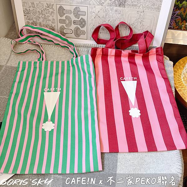 黑用新的CAFE!N再外帶紙袋包裝袋上,也換上大膽聯名的桃紅色,大大可愛的PEKO將,讓你外帶拿在手上就是超級顯眼的超級好看!