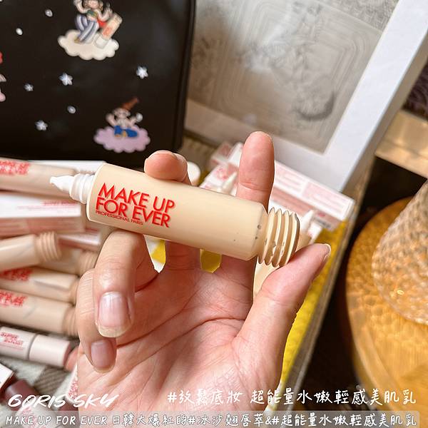 設計上MAKE UP FOR EVER 超能量水嫩輕感美肌乳蠻可愛蠻有趣的,有點類似boosting方式,尾部有點彈簧概念按壓,就能擠出MAKE UP FOR EVER 超能量水嫩輕感美肌乳